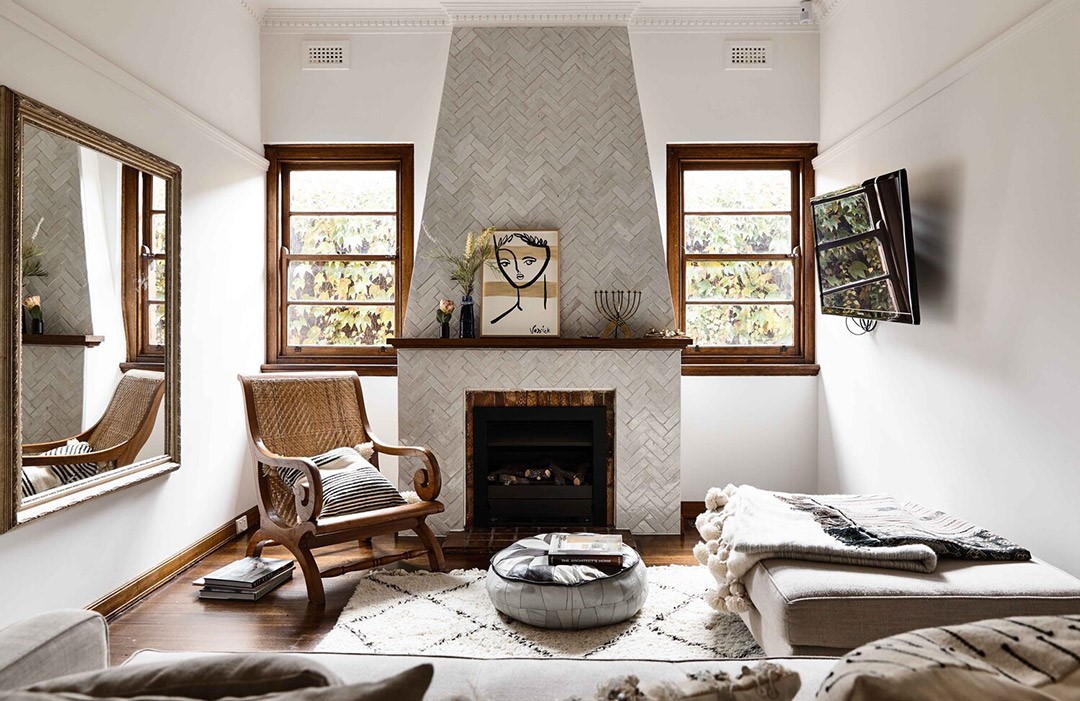 Phong cách này ưu tiên sử dụng vải lanh, bông và nhung, kết hợp với gỗ cũ và kim loại. Trang trí thường bao gồm khung ảnh cổ điển, đèn chùm vintage, và phụ kiện như gương với khung cổ điển và thảm lông xù, tạo không gian ấm cúng và quyến rũ.
